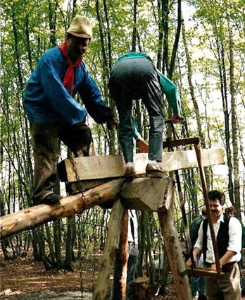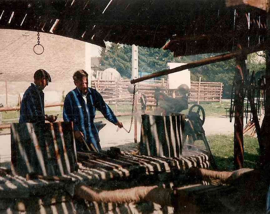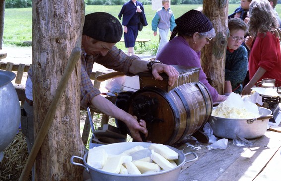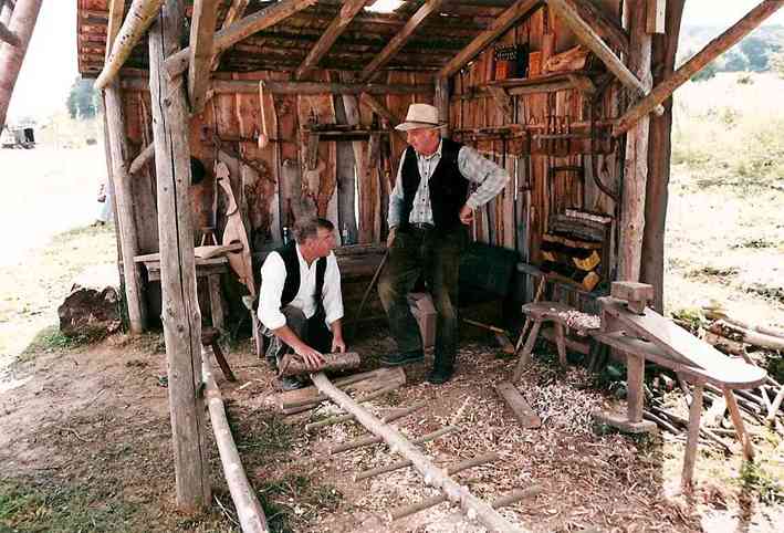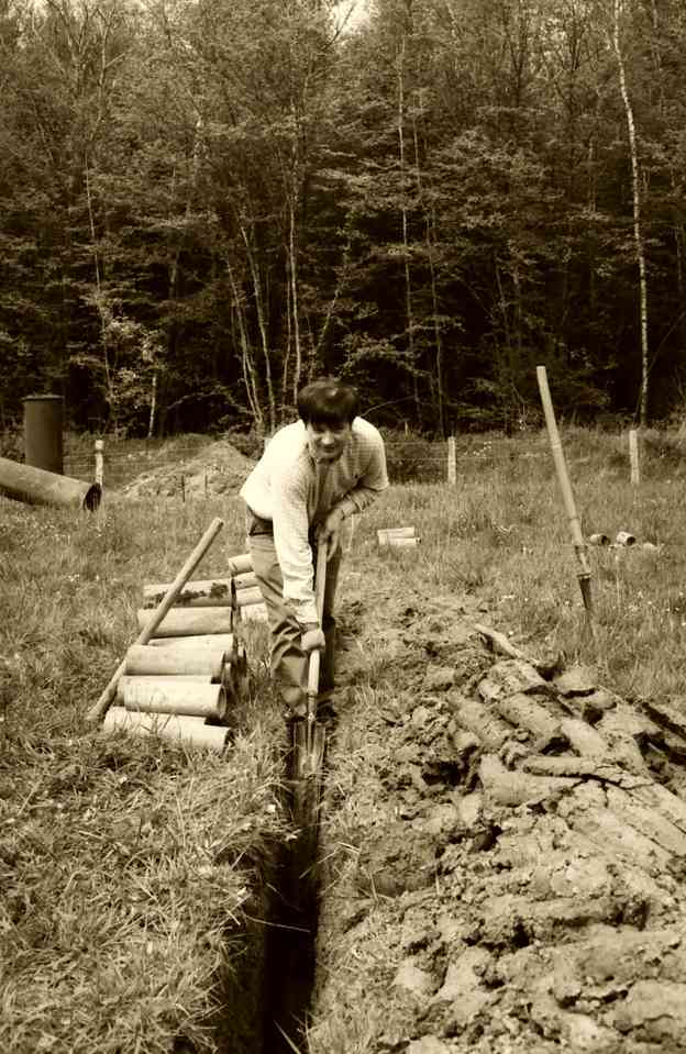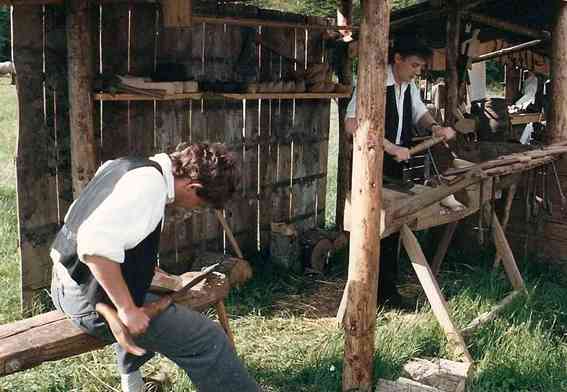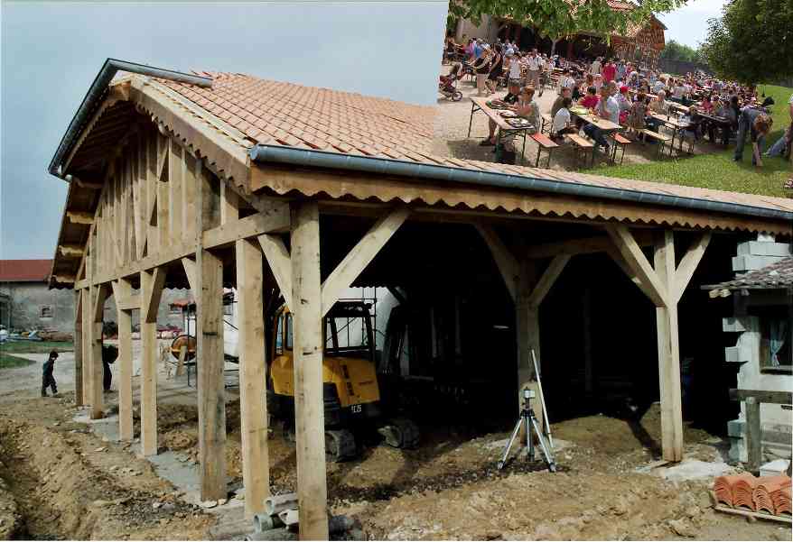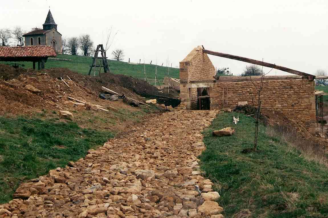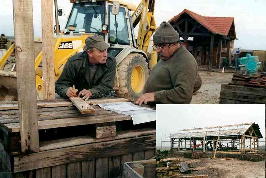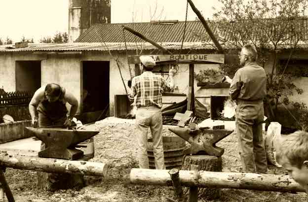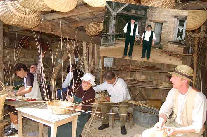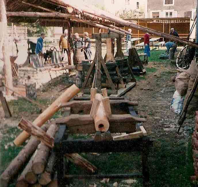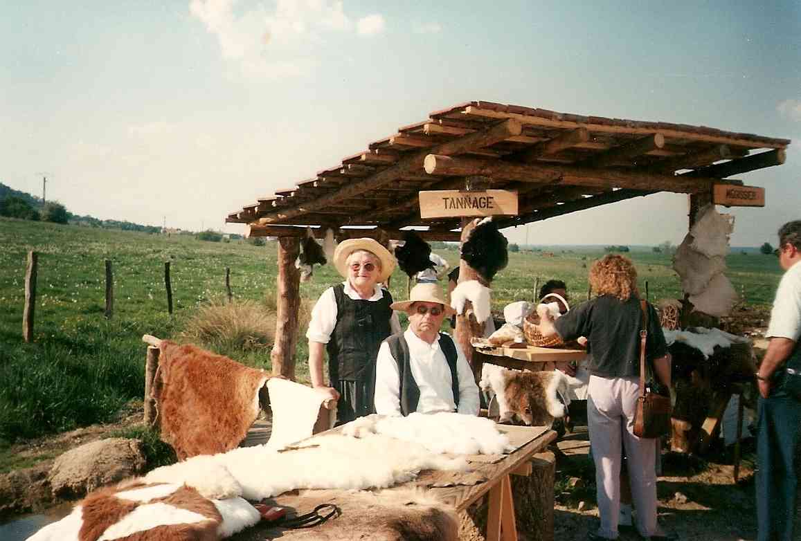 En 1990, c’est à Azannes à la ferme des Roises, entourée de 17 ha de terrain, que s’implante définitivement l’association. Très vite, les premiers travaux débutent : transformation des écuries en rue des artisans, de la grange en restaurant, du poulailler en boulangerie, de la laiterie en école, terrassement d’un étang, construction de petits abris de fortune dans la prairie pour accueillir les artisans.